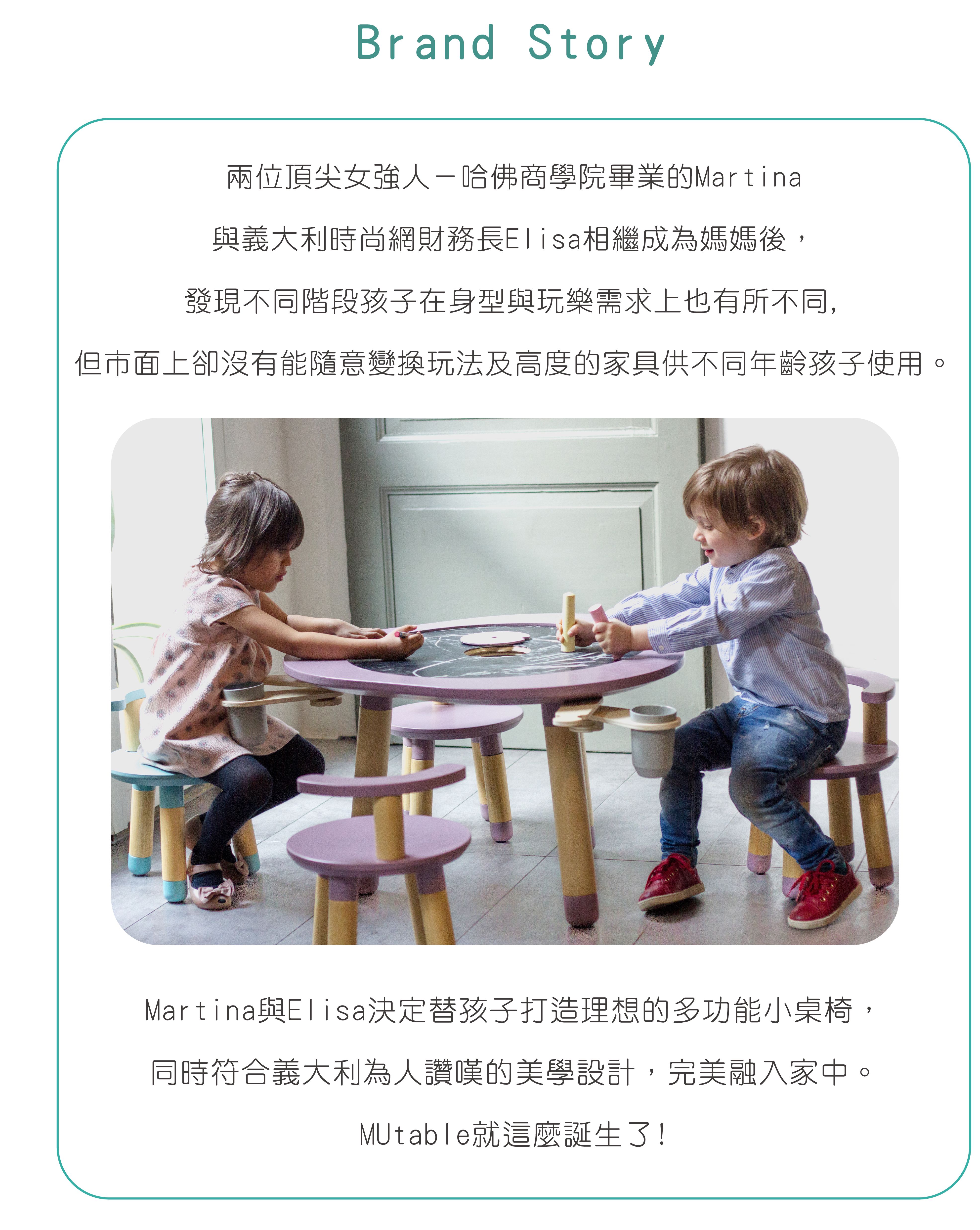 Martina與Elisa決定替孩子打造專屬的小桌椅,同時符合義大利令人讚嘆的美學工藝,完美融入家中,MUTable就這樣誕生了