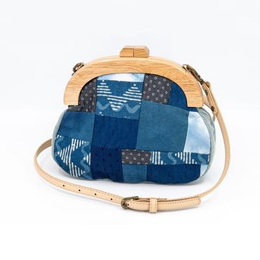 月升 | 藍染拼接木口金包