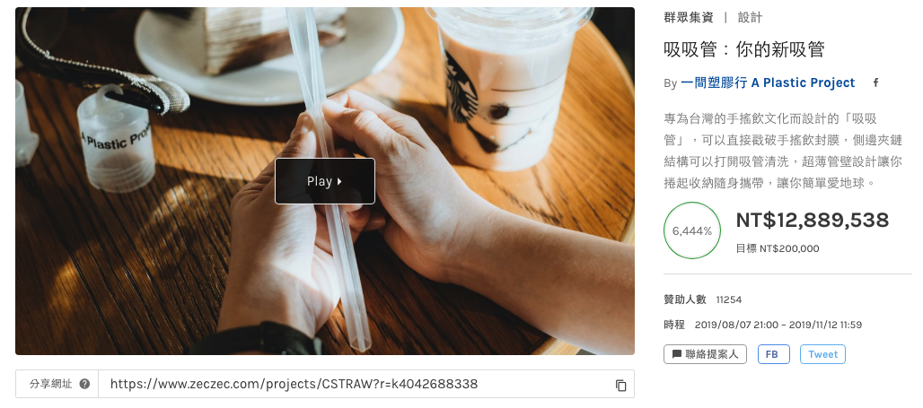 由 A Plastic Project (大間研發)企劃製作的募資計畫「吸吸管」,充分展現台灣設計人的使命與精神,背後還有台灣塑膠加工生產的雄厚實力,設計能力與生產製程唯有在台灣才能發生。「吸吸管」於 108 年 8 月發起募資計畫,成功獲得近 4 萬組的贊助定單,募資總額高達新台幣近 1300 萬,創下台灣吸管專案第一、世界專案第二的獲贊助紀錄。