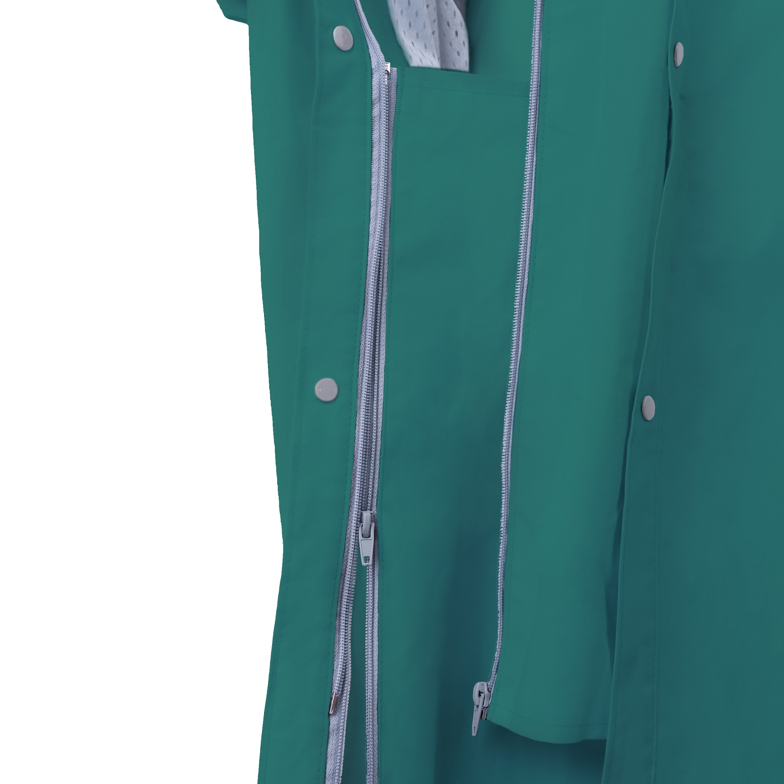 此棉質雨衣,布料透濕度達10,000 g/m2/24hr (JIS L1099 B1),在正常情況下 (非剛運動完),讓你穿著不再感到悶熱。
