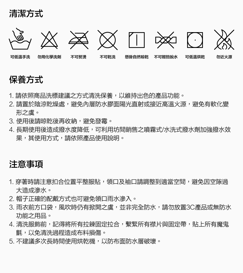 雨衣防水層採用無孔防水薄膜,冬天防風效果極佳。