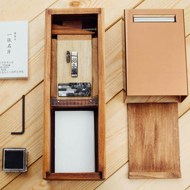 【一張名片】改良了傳統印刷機的機構原理,將機臺體積壓縮至便於個人收藏與攜帶,但卻不損失傳統工法的印刷精準度。同時也簡化了操作方式,搭配上多款版型樣式的獨家設計名片版,讓您輕鬆上手活版印刷的排版作業!